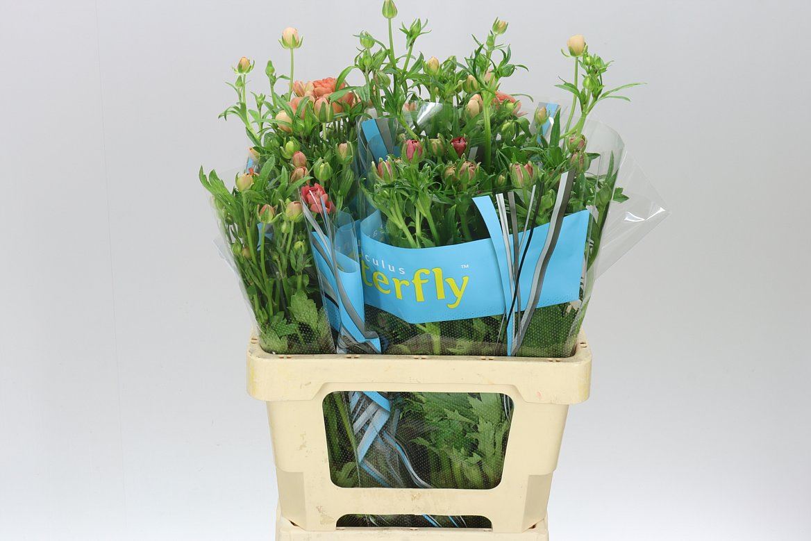 Ranuncul Butterfly ErisOZ Import BVColour Peach Stem length 60 Colli 2 Weight 40 Content 10 Country of Origin